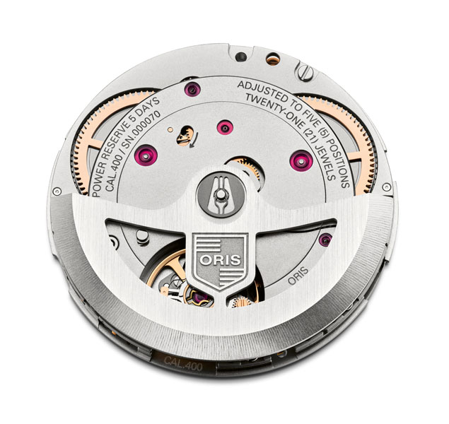 La série Calibre 400 d’Oris établit la nouvelle norme en matière d’horlogerie mécanique automatique. Entièrement conçue en interne par les ingénieurs qualifiés de la société horlogère suisse indépendante, elle offre une forte résistance antimagnétique, une réserve de marche de cinq jours et est livrée avec une garantie et des intervalles d’entretien recommandés de 10 ans.