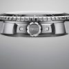Boîtier en acier composé de plusieurs pièces, lunette en céramique noire brillante avec échelle des minutes