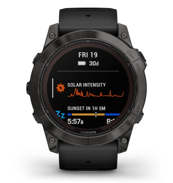 La batterie tient jusqu’à 37 jours en mode montre connectée grâce au verre solaire avec 3 heures par jour d’exposition à la lumière directe du soleil (50 000 lux) et jusqu’à 122 heures en mode GPS avec grâce au verre solaire (en cas d’utilisation continue en plein soleil à 50 000 lux).