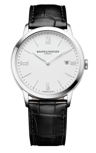 Grâce à son cadran blanc épuré au design minimaliste, cette montre date de 42 mm est un choix classique pour les hommes aux goûts sobres. Le cadran est orné de chiffres romains et du guichet de date emblématique de Baume et Mercier à 3 heures. Le style moderne de cette montre à quartz est complété par un bracelet cuir noir et une boîte en acier poli. Ce modèle destiné aux puristes fait partie de nos meilleures ventes.