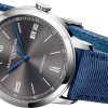 La Classima 10608 offre un look chic et sophistiqué grâce à un cadran de couleur ardoise et des aiguilles bleues peintes. Cette pièce est accompagnée d’un bracelet tissu bleu lui donnant une touche decontractée, idéale pour les weekends.
