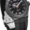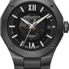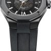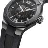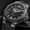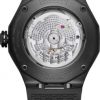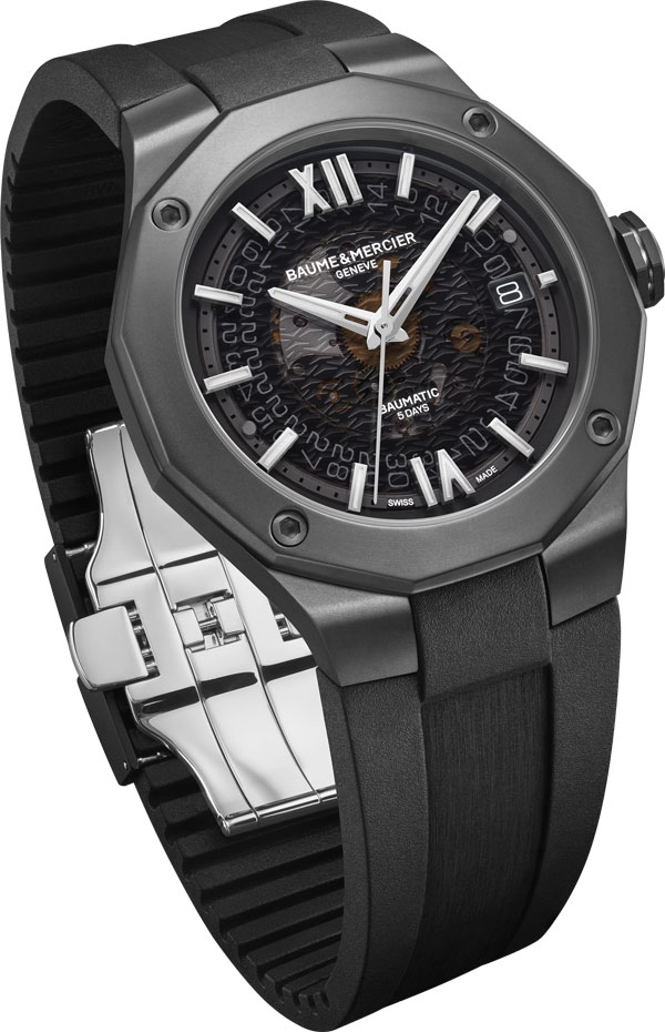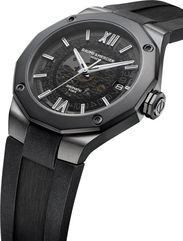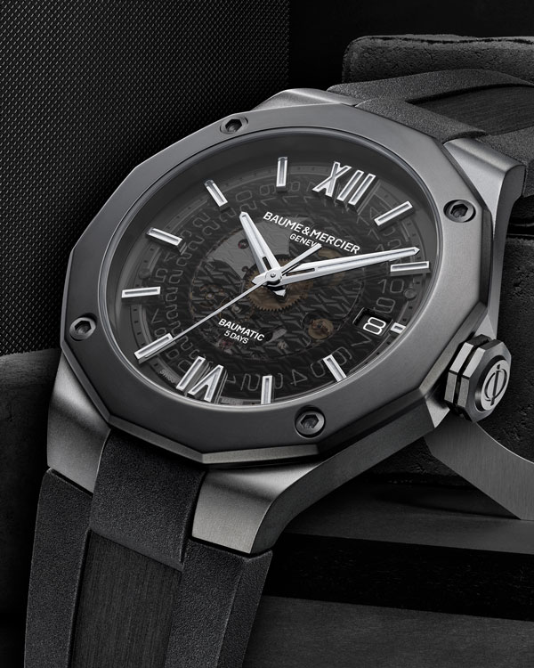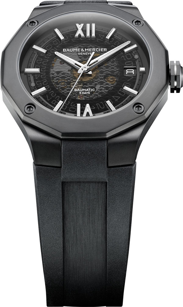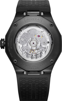 Equipé du prestigieux calibre maison Baumatic, la Riviera 10617 est la subtile alliance du rafinement avec un côté sport. Présentant un cadran fumé translucide gris and une boite dodécagonal en acier couvert d’ADLC noir, cette pièce à la silhouette distinctive se pare d’un bracelet souple noir pour un look total black assumé.