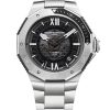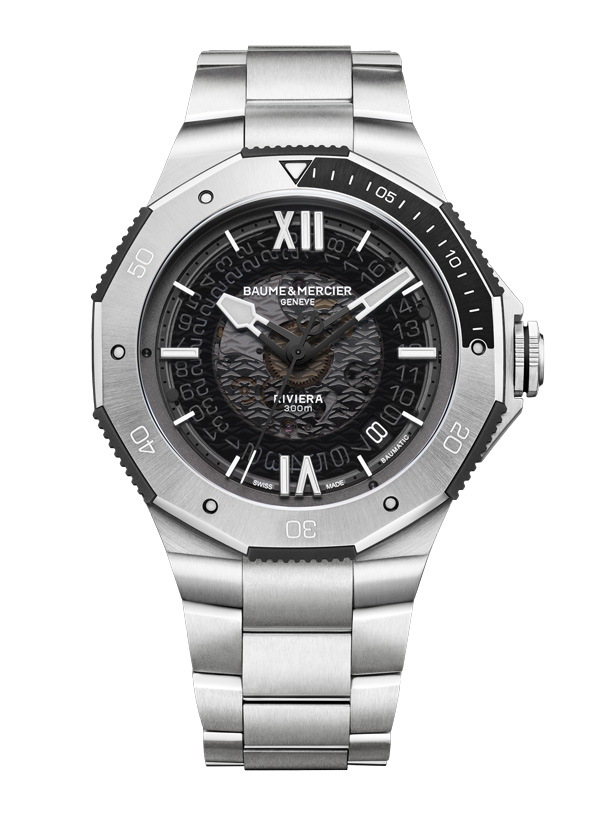 Animée par le prestigieux calibre manufacture Baumatic, la Riviera 10717 est la montre suisse tout-terrain par excellence. Son cadran saphir gris fumé transparent, sa lunette tournante unidirectionnelle et sa bague en aluminium anodisé noir affirment l’allure sport de cette montre « Swiss-made ». La montre idéale pour les sports nautiques.
