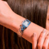 Brasilia Montre pour femmes, boîte en acier inoxydable, 22.90mm de largeur, finition polie, cadran opalin blanc et chiffres romains peints, glace saphir antireflet en dessous, bracelet en acier inoxydable, mouvement quartz suisse, étanche jusqu’à 50 mètres.