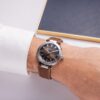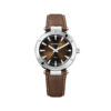 Mais ce qui distingue cette version, c’est son cadran brun chaud à l’effet soleillé, une teinte rare dans l’univers horloger masculin. Ce choix audacieux insuffle une dimension chaleureuse et contemporaine à une montre aux lignes marines affirmées. L’affichage date à 3 h vient rythmer la composition avec précision.