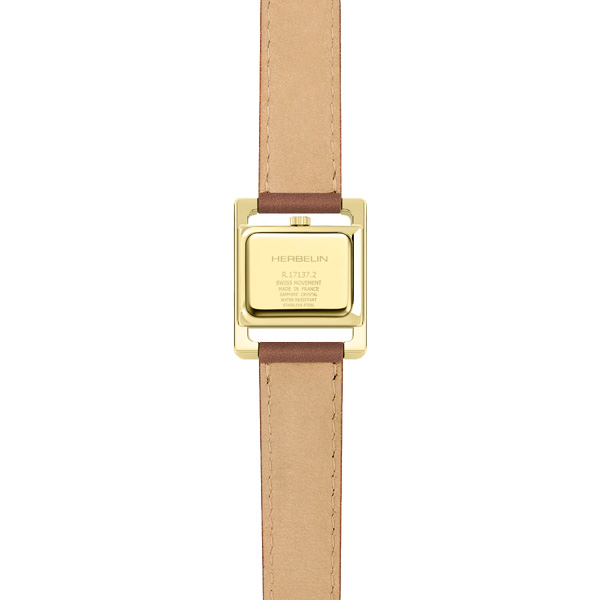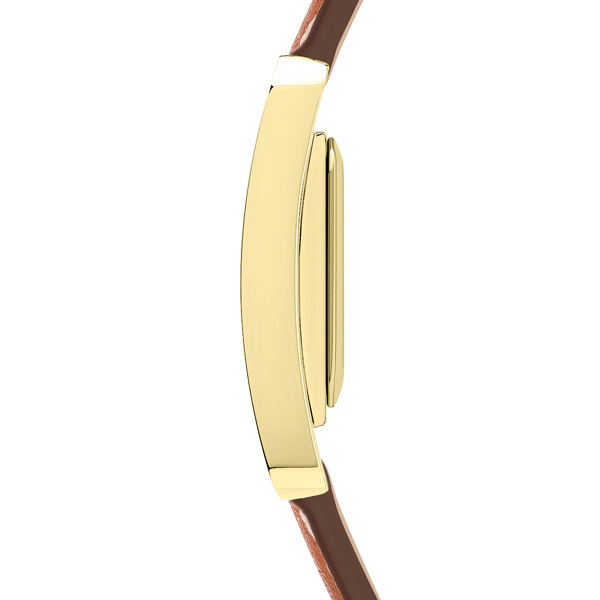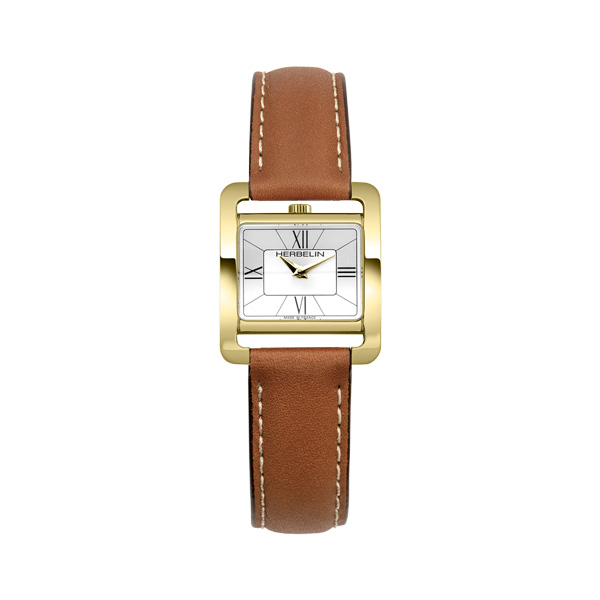 Le boitier en PVD or jaune est complété d’un cadran en argent soleillé reflétant chaque éclat de lumière. Les index en chiffres romains apportent modernité à ce modèle. Ve Avenue est habillée d’un bracelet en cuir noir.