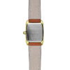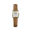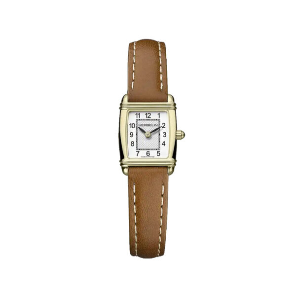 Son bracelet en cuir camel, agrémenté de surpiqûres blanches, complète parfaitement ce design rétro. Une montre à porter comme un bijou, seule ou en accumulation avec d’autres accessoires ou bijoux, pour un style résolument féminin.