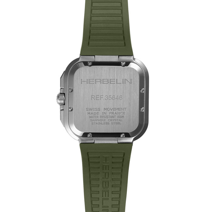 Protégée par un verre saphir et étanche jusqu’à 100 mètres, la montre pour homme CAP CAMARAT SQUARE Chrono Vert & FKM Vert est animée par un mouvement suisse à quartz, réputé pour sa fiabilité et sa précision. Une montre taillée pour les amateurs de belle mécanique au style résolument urbain.