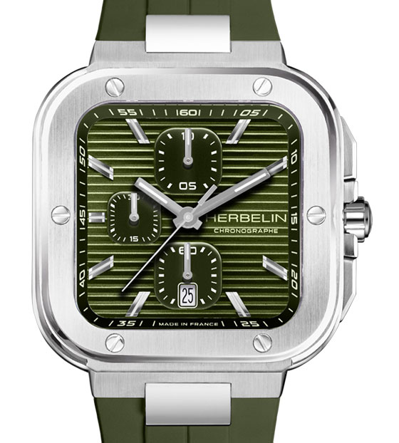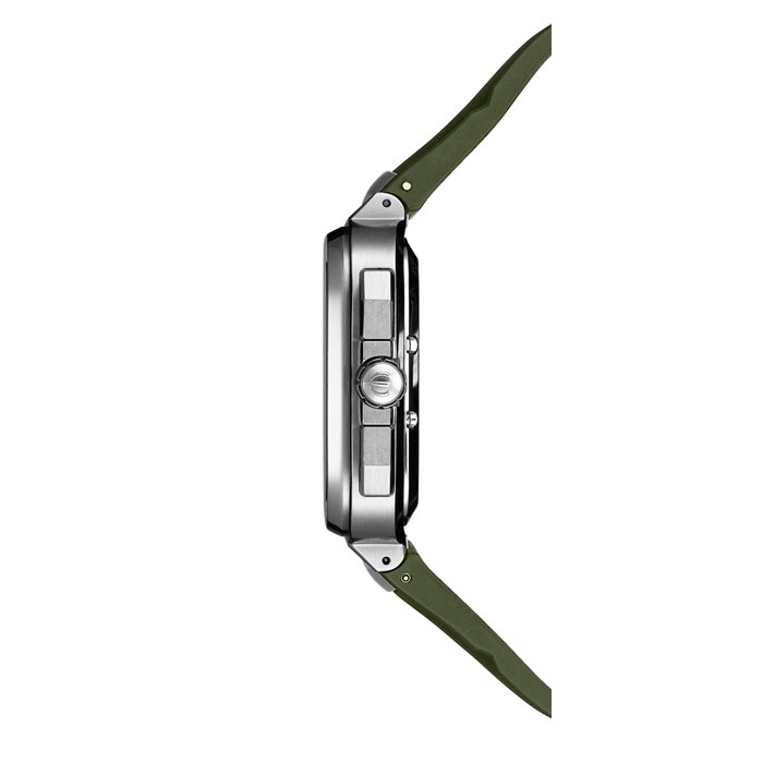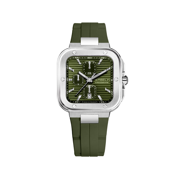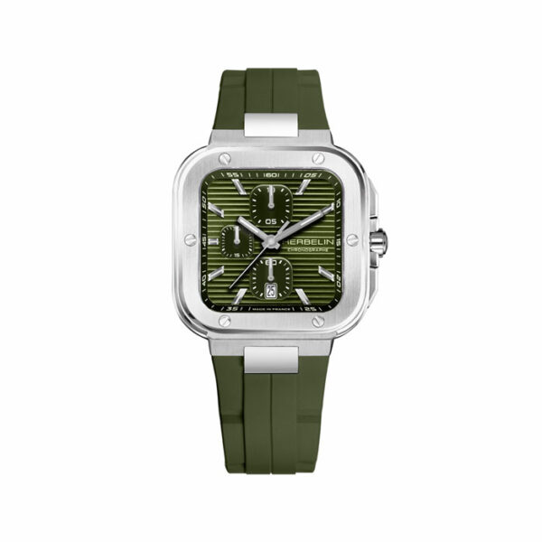 CAP CAMARAT SQUARE Chrono Vert & FKM Vert : l’allure sport-chic en version audacieuse. Ce chronographe au caractère affirmé conjugue performance, confort et design contemporain dans un boîtier carré inspiré du style néo-vintage des années 70.