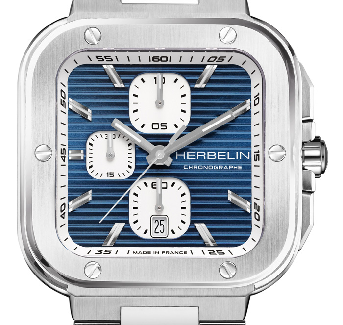 La couronne crantée attire l’attention, tandis que les boutons poussoirs ont été conçus pour se fondre harmonieusement dans le boîtier.