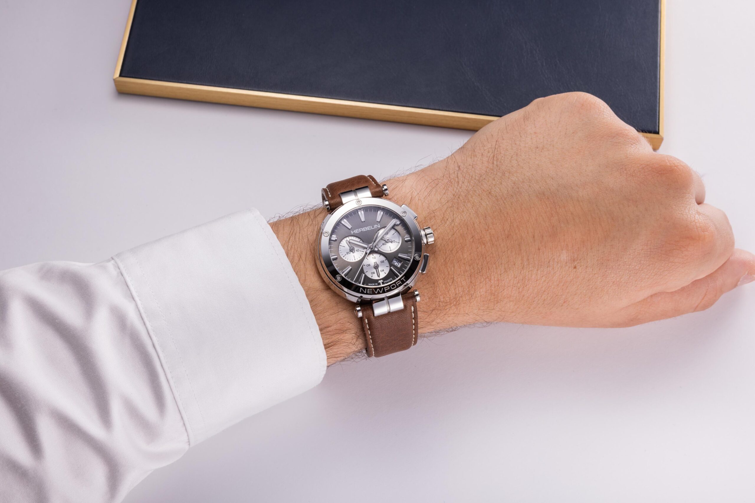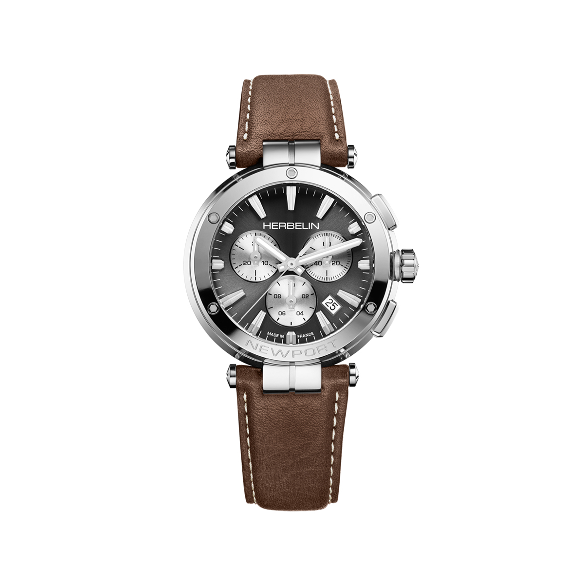 NEWPORT CHRONOGRAPHE GRIS, BLANC & CUIR BRUN