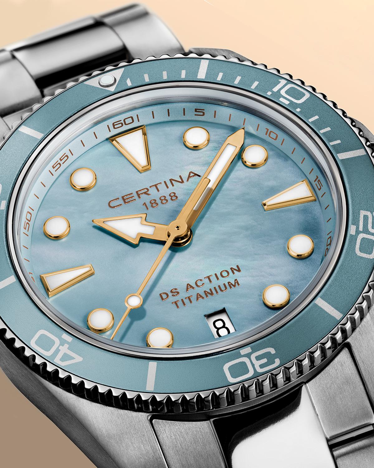 Le titane est un élément métallique extrêmement robuste, antiallergique et résistant à la corrosion, mais aussi particulièrement léger, soit environ la moitié du poids de l’acier. Il permet ainsi à Certina de fabriquer des boîtiers, des bracelets et des fermoirs au confort extrême.