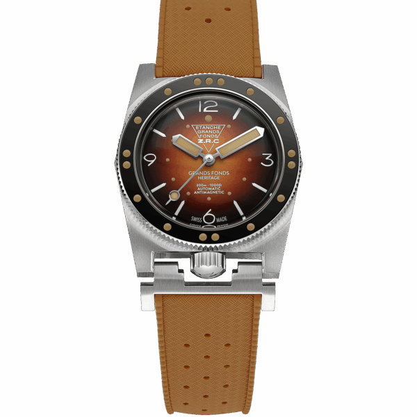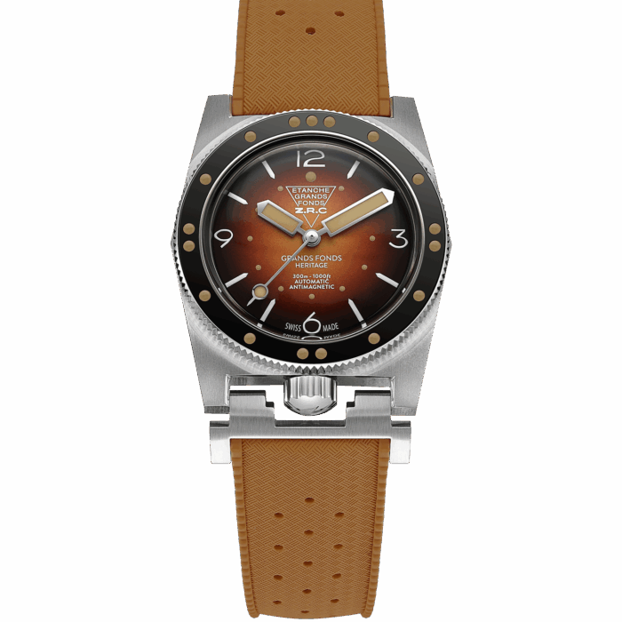 À la fois sobre et élégante la nouvelle Grands Fonds® de la gamme HERITAGE bien que taillée pour l’aventure devient un compagnon indispensable au quotidien. Sans renier son ADN de plongeuse, la minuterie de sa lunette et la finesse de ses aiguilles lui confère un caractère « Sport Chic ». Son calibre Suisse précis et sûre vous apportera confort et sécurité. A l’aise sur un poignet masculin comme féminin elle est le compagnon idéal de votre quotidien.