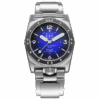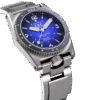 Avec son cadran dégradé bleu marine/noir, son boîtier en acier satiné et son bracelet métal, cette version représente la quintessence de la montre de plongée Grands Fonds 300®.