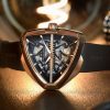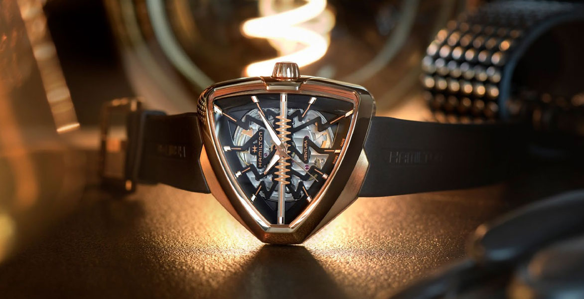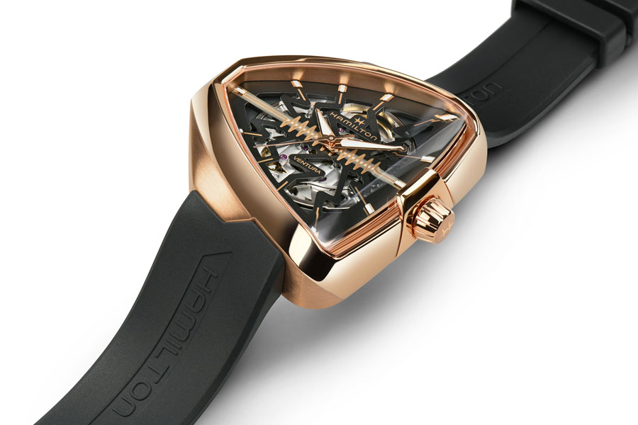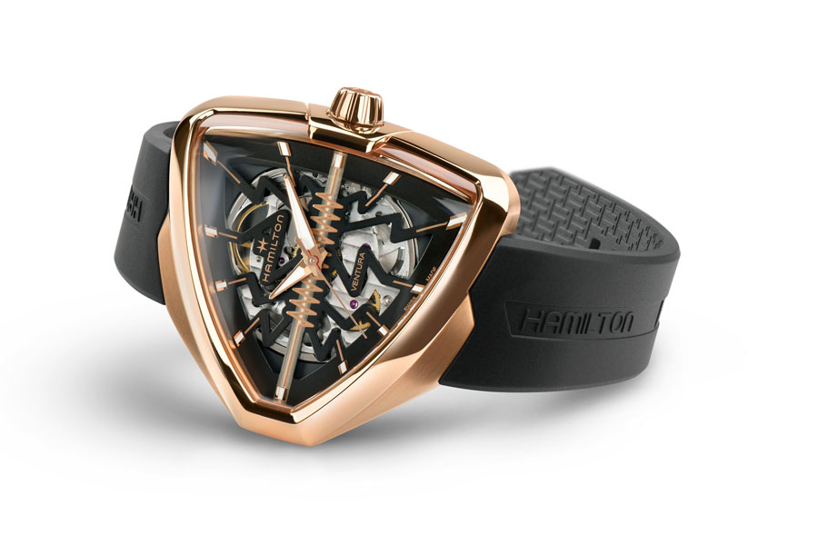 Démarquez-vous avec la Ventura Elvis80 Skeleton, un hommage ultra-moderne au passé, au présent et au futur de la première montre électrique au monde. Évolution puissante d’une montre révolutionnaire, son cadran squeletté précis présente un zigzag saisissant au centre assorti à son boîtier triangulaire lumineux en or rose revêtu de PVD. Cet éclair rend hommage à un modèle d’innovation et met en valeur le mouvement à remontage automatique H-10-S en son cœur.