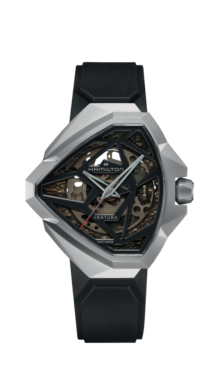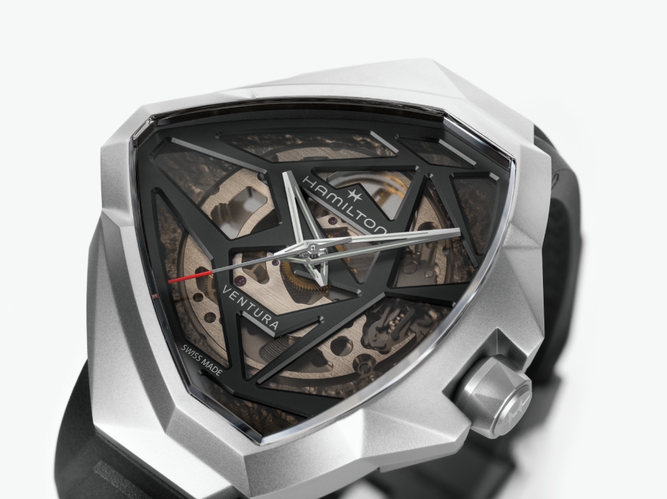 La Ventura Edge Skeleton se distingue par son boîtier en acier argenté au design architectural unique. Inspirée de lignes modernes et futuristes, sa structure joue avec les contrastes entre ombre et lumière, offrant une allure sombre et énigmatique.