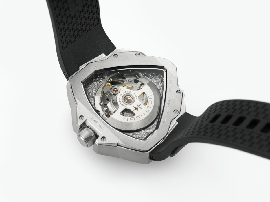Equipée du mouvement automatique H-10-S, la montre assure une réserve de marche de 80 heures.
