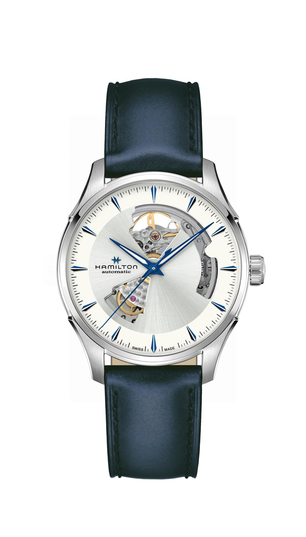 Le savoir-faire horloger classique rencontre le design contemporain dans cette Jazzmaster Open Heart Automatic bleue et argent. Les découpes précises sur le cadran de 40mm offrent un aperçu du mouvement de fabrication suisse et confèrent une personnalité affirmée à cette montre sophistiquée.