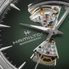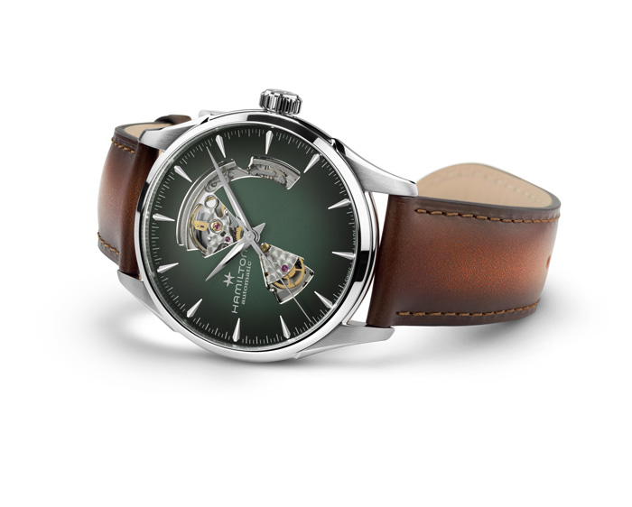 Le calibre H-10 est un mouvement à trois aiguilles doté d’une fonction date et d’une impressionnante réserve de marche de 80 heures. Il se présente avec une finition complexe alternant perlage et colimaçon pour les modèles American Classic, ainsi que des surfaces sobres pour les montres destinées aux pilotes.