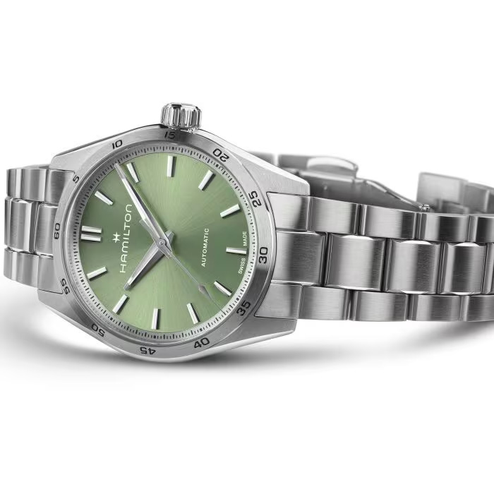 Le calibre H-10 est un mouvement à trois aiguilles doté d’une fonction date et d’une impressionnante réserve de marche de 80 heures. Il se présente avec une finition complexe alternant perlage et colimaçon pour les modèles American Classic, ainsi que des surfaces sobres pour les montres destinées aux pilotes.