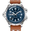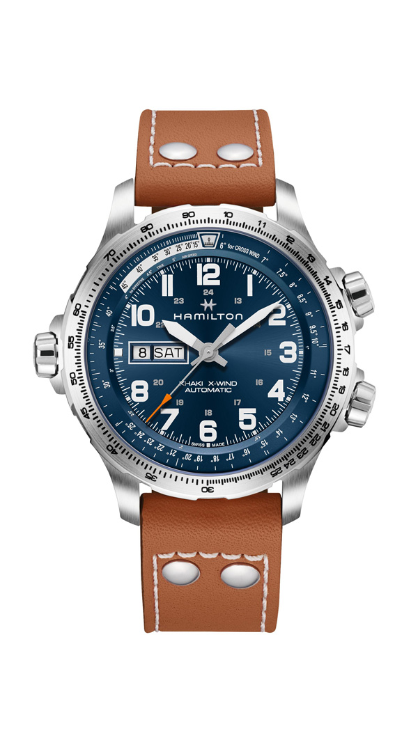 Hamilton intègre à la collection Khaki X-Wind une version Day Date à remontage automatique. Dotée de grands chiffres en Super-LumiNova® et d’aiguilles sportives, elle offre la lisibilité exceptionnelle nécessaire lorsque vous n’avez qu’une fraction de seconde pour consulter votre cadran. Le positionnement à 9 heures du guichet jour-date contribue à l’équilibre visuel du cadran. Parfaitement clair, et paré pour le vol.