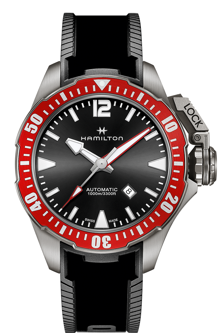 Créée pour les plongeurs de la marine américaine et portée à l’écran dans le film de 1951 Les Hommes-grenouilles, cette nouvelle montre de plongée a été pensée pour répondre aux exigences strictes d’une utilisation sous-marine. Le boîtier en titane de 46 mm, étanche jusqu’à 100 bars (1 000 mètres), possède une lunette tournante unidirectionnelle en aluminium rouge. La version dotée d’un boîtier de 42 mm en acier inoxydable se décline en bleu ou en noir.