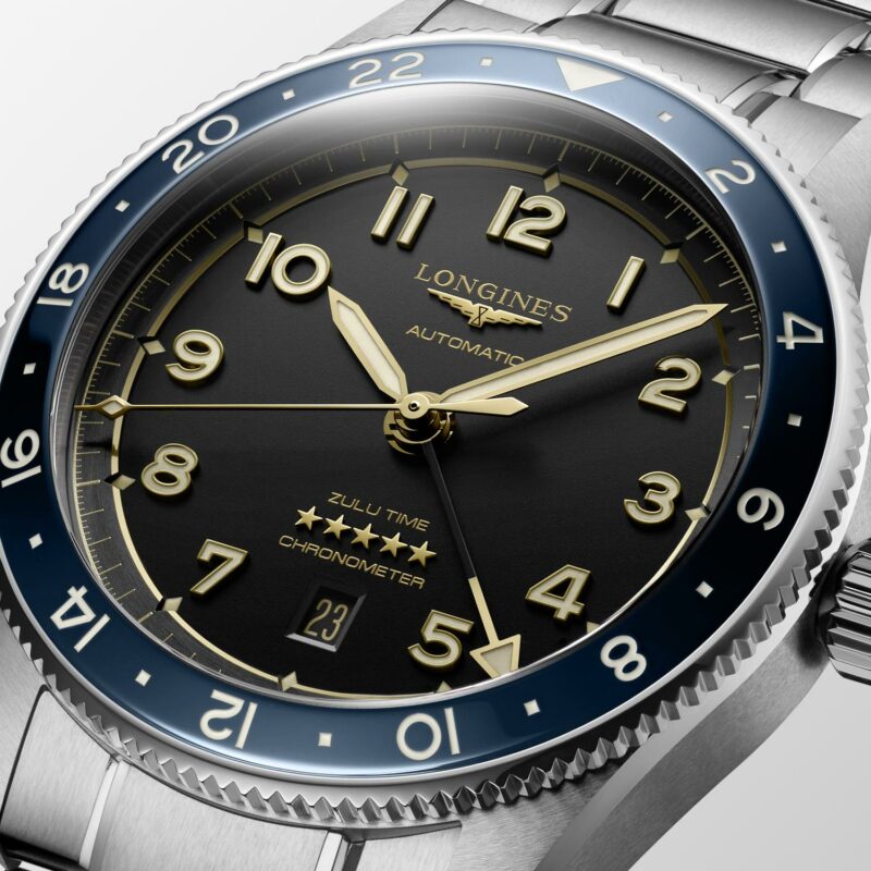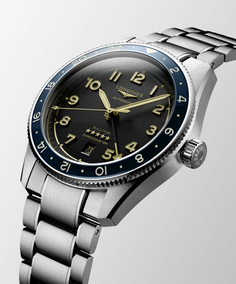 Gmt date, mouvement mécanique à remontage automatique oscillant à 25 200 vibrations par heure, équipé d’un ressort spiral en monocristal de silicium et doté d’une réserve de marche jusqu’à 72 heures.