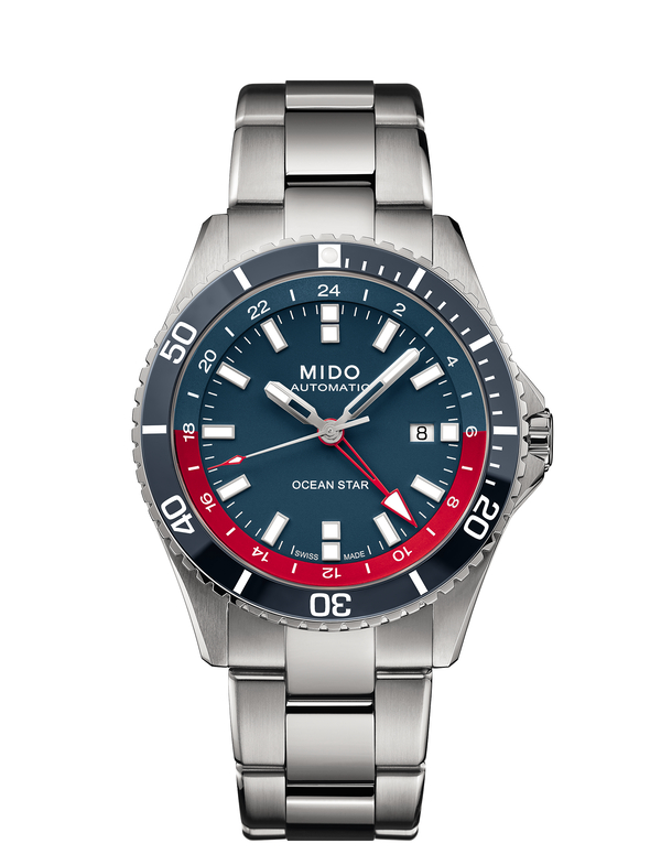 MIDO enrichit sa collection de montres de plongée Ocean Star d’une version équipée de la très pratique fonction GMT. Parfaitement lisible, l’heure s’affiche pour deux fuseaux horaires différents : celui du lieu d’origine et celui du voyage. Sur le fond de cette montre suisse sportive – équipée du mouvement automatique Calibre 80 , qui offre une réserve de marche allant jusqu’à 80 heures – MIDO a gravé l’indications des fuseaux horaires. D’une grande simplicité d’utilisation, la fonction GMT offre deux fois plus de liberté pour ceux qui sont au bord de l’océan ou dans une aventure pleine d’adrénaline.