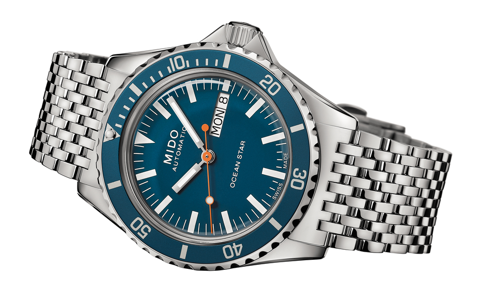 Mido rend hommage à la collection Ocean Star. Subtil clin d’oeil au passé, la montre suisse Ocean Star Tribute réinterprète les codes esthétiques des modèles de plongée des années 1960. Elle est équipée du mouvement automatique Calibre 80 avec jusqu’à 80 heures de réserve de marche, est étanche jusqu’à une pression de 20 bar (200m) et dispose d’un bracelet unique offrant un confort maximal.