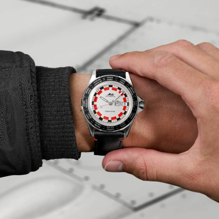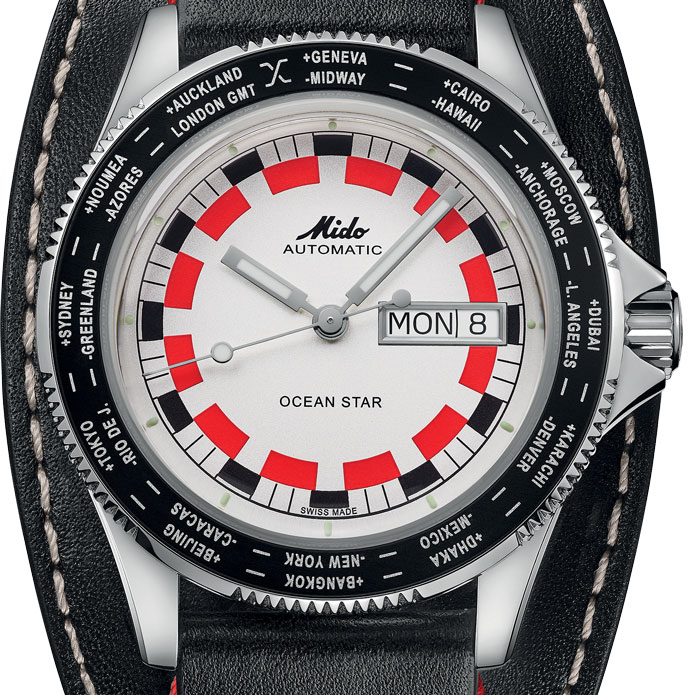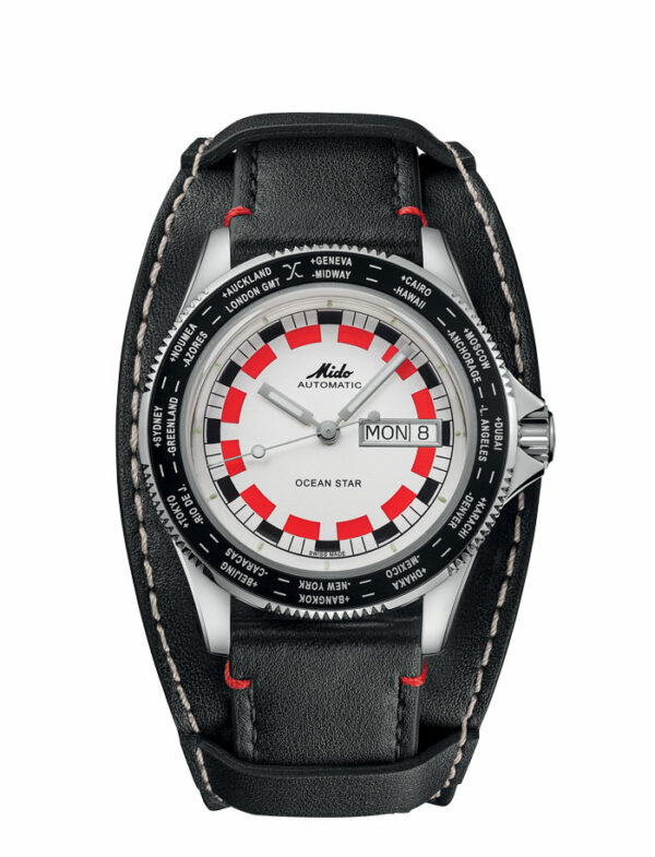 MIDO habille l’Ocean Star Worldtimer d’un style rétro et invite aux grands voyages. Ses atouts ? Un charme vintage, inspiré d’un modèle MIDO des années 1970 — révélé par un cadran emblématique à damier noir et rouge, ainsi que par le logo MIDO d’époque —, une mécanique de haute précision et une étanchéité jusqu’à 200 mètres, véritable signature de la collection Ocean Star. Son âme d’exploratrice, à la fiabilité inébranlable, se pare de sublimes détails historiques.