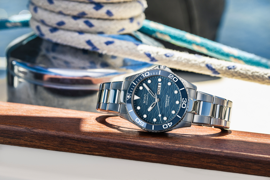 Mido intègre la céramique – l’un des matériaux les plus performants de l’horlogerie – à la lunette tournante unidirectionnelle de sa montre suisse sportive Ocean Star 200C. Le cadran est décoré d’une texture ondulée et offre des index appliqués individuellement recouverts de Super-Luminova® blanc. Cette montre de plongée est étanche jusqu’à 20 bars, la forme du boîtier offrant une protection supplémentaire à la couronne vissée. Le fond du boîtier vissé est gravé du logo Ocean Star. De plus, le mouvement automatique logé a une autonomie allant jusqu’à 80 heures.