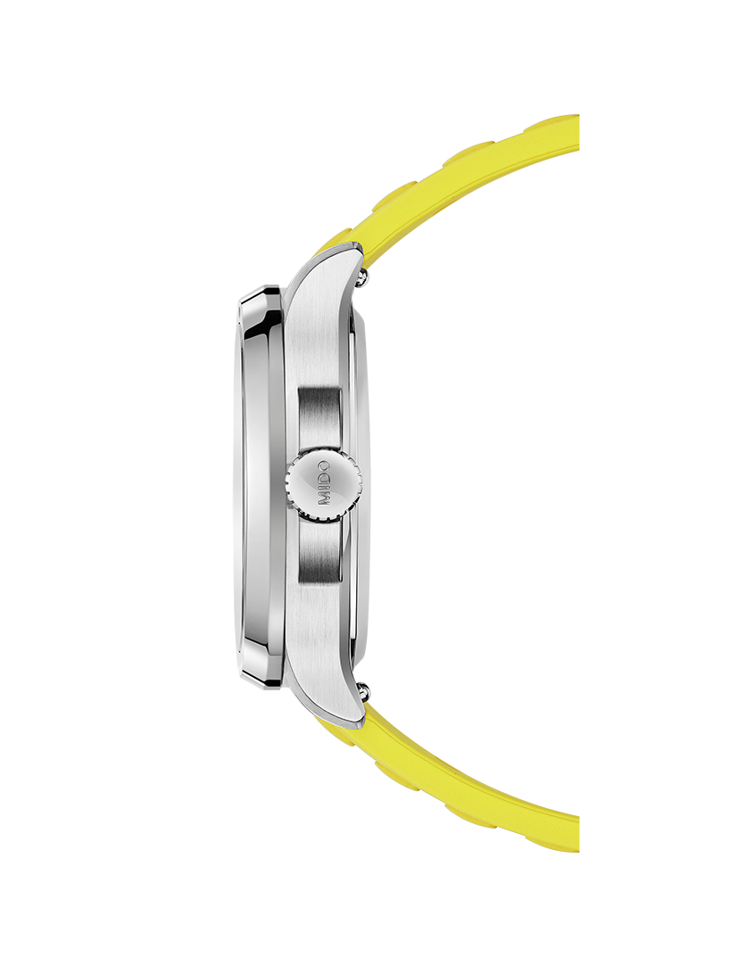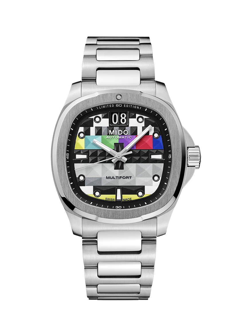 Flashback réussi ! Né de l’extraordinaire histoire de MIDO, le boîtier de forme TV revient sur le devant de la scène, pour une Multifort TV Big Date aussi intense que précise dans les moindres détails. Le design moderne et dynamique de cette montre suisse est souligné par un saisissant cadran au brossage horizontal et surtout sa grande particularité: la BIG DATE à 12h. Son redoutable mouvement automatique de dernière génération, le Calibre 80 est équipé d’un spiral high tech en Nivachron™ gage d’une résistance remarquable aux chocs et au magnétisme.