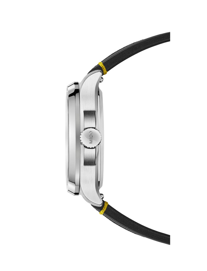 Avec cette nouvelle interprétation dynamique en noir et jaune, MIDO renforce le tempérament fort et audacieux de la Multifort TV Big Date, portée par une mécanique précise et ultra–robuste.