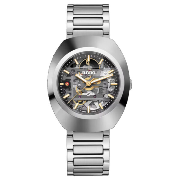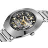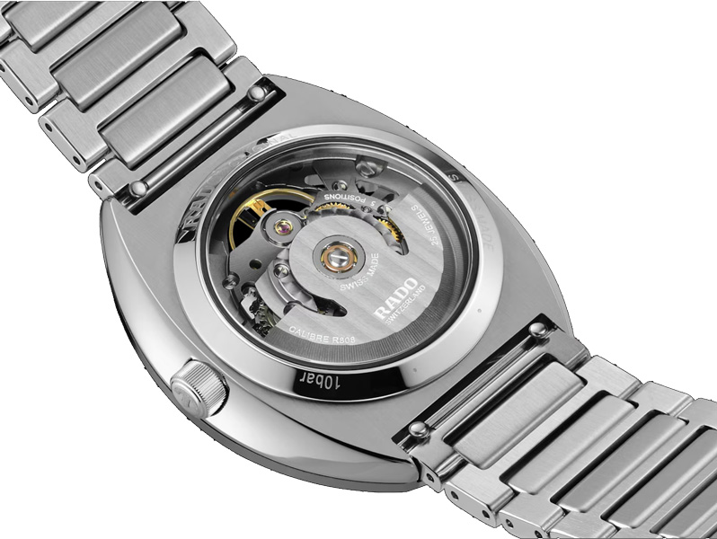 La DiaStar Original Skeleton présente une autre version du calibre automatique R808 de haute qualité, revêtu de gris anthracite et complété de divers éléments dans ses rouages offrant une élégante danse visuelle de contrastes. Grâce à ses ouvertures en verre saphir à l’avant et à l’arrière, le mouvement automatique se dévoile dans toute son élégance technique, avec sa réserve de marche de 80 heures. À l’intérieur, un spiral en Nivachron™ amagnétique veille à la précision et à la fiabilité extrêmes de ce mouvement qui a été testé dans les cinq positions. Sa structure ouverte et son impressionnant mouvement squelette R808 apportent une touche plus légère et aérienne à la nouvelle DiaStar Original, un véritable contraste de design à l’intérieur du cadre visuel créé par la lunette en Ceramos™. La teinte plus foncée est joliment mise en valeur par les aiguilles et les index flottants couleur or jaune avec Super-LumiNova® blanc pour une excellente lisibilité même dans l’obscurité.