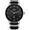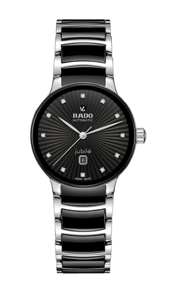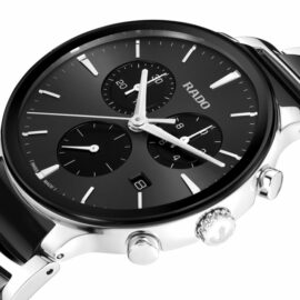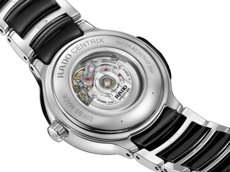 Le modèle classique Centrix Automatic Diamonds a été revisité non seulement sur le plan technique, mais aussi esthétique. Désormais, il présente un boîtier galbé qui se fond merveilleusement avec le bord du verre saphir arrondi. Les cornes ajustées du boîtier et le bracelet en acier inoxydable poli avec maillons intermédiaires en céramique haute technologie noire viennent compléter l’apparence générale de ce garde-temps emblématique. Le cadran facetté noir dévoile un magnifique effet 3D obtenu par estampage de la forme du cadran et laquage. Le mouvement à trois aiguilles calibre R582 dépasse les exigences des tests standard de précision de trois à cinq positions, grâce à son spiral en Nivachron™ amagnétique pour plus de fiabilité et de précision. Cette montre est étanche jusqu’à 50 m et offre une réserve de marche de 48 heures.