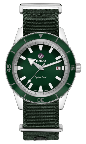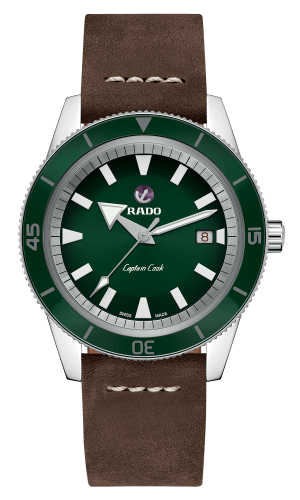 Un look original de 1962 prend vie dans une édition améliorée pour le XXIe siècle. Avec ses détails vintage, son style fidèle à l’original et ses fonctions modernes, la Captain Cook est une montre conçue pour résister à l’épreuve du temps. La Captain Cook est proposée dans une pochette de voyage en cuir résistant avec un assortiment de bracelets supplémentaires que vous pouvez interchanger rapidement et facilement sans l’aide d’outils grâce à l’EasyClip System de Rado.
