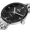 Le boîtier est complété par un bracelet en acier inoxydable composé de maillons brossés et polis, fixé par une boucle déployante triple en acier inoxydable.