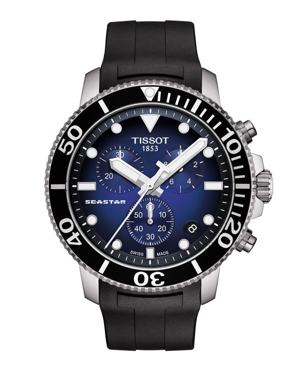 Sophistication ultime en matière d’équipement de plongée, autant sur le plan esthétique que technique, la Tissot Seastar 1000 incarne le style et la performance, sans compromis. Dédiée à la plongée, elle offre un look sportif et des fonctionnalités indispensables sous l’eau. Parfaitement fiable jusqu’à une pression de 30 bar (300m), elle est la preuve qu’une montre de sport sous-marin et un garde-temps automatique sophistiqué peuvent être conciliés en un même objet. Le thème de la plongée est omniprésent avec des éléments tels qu’une lunette unidirectionnelle, un bracelet avec boucle de plongée ou encore des aiguilles et index luminescents.