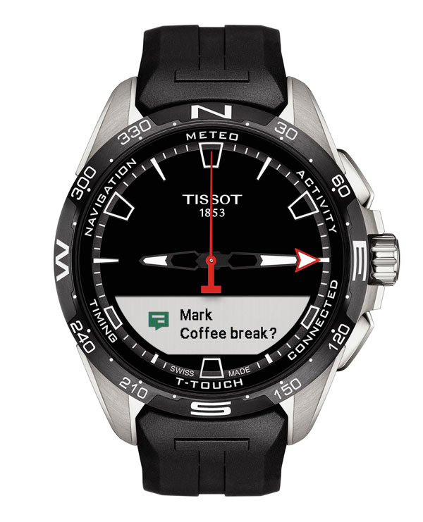 En mode connectée, de nouvelles fonctions font leur apparition, comme le traqueur d’activité, les notifications de messages ou d’appels. Les informations s’affichent sur un écran MIP (Memory In Pixel) à haute lisibilité. Quand elle n’est pas connectée, elle retrouve les fonctions d’une T-Touch Solar Expert : calendrier perpétuel, compte à rebours, chronographe, alarmes, météo et altimètre.