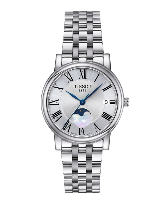 La Tissot Carson, chef d’œuvre horloger à arborer en tout lieu et en toute occasion, est le compagnon idéal pour faire de chaque instant un temps fort de votre vie. Avec son design épuré, son goût sûr et ses indications de phases de lune, la nouvelle collection Tissot Carson Premium Lady Moonphase tombe juste à tous les coups.