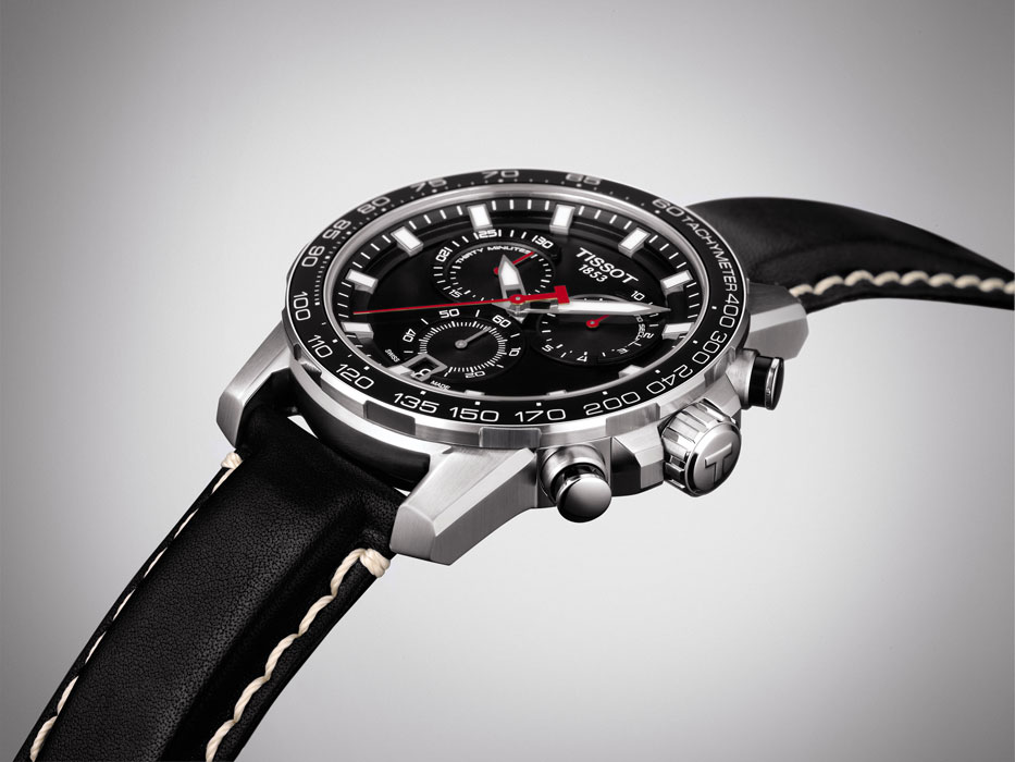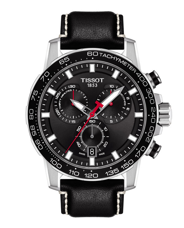 La Tissot Supersport Chrono est une montre idéale pour les hommes chics et sportifs. Ce large chronographe de 45,5 mm est doté d’un mouvement à quartz de fabrication Suisse. La profondeur du cadran, ainsi que ses index en relief permettent une lisibilité de l’heure optimale. Le boitier en acier est surmonté d’une lunette avec échelle tachymétrique et monté sur un bracelet en cuir noir.